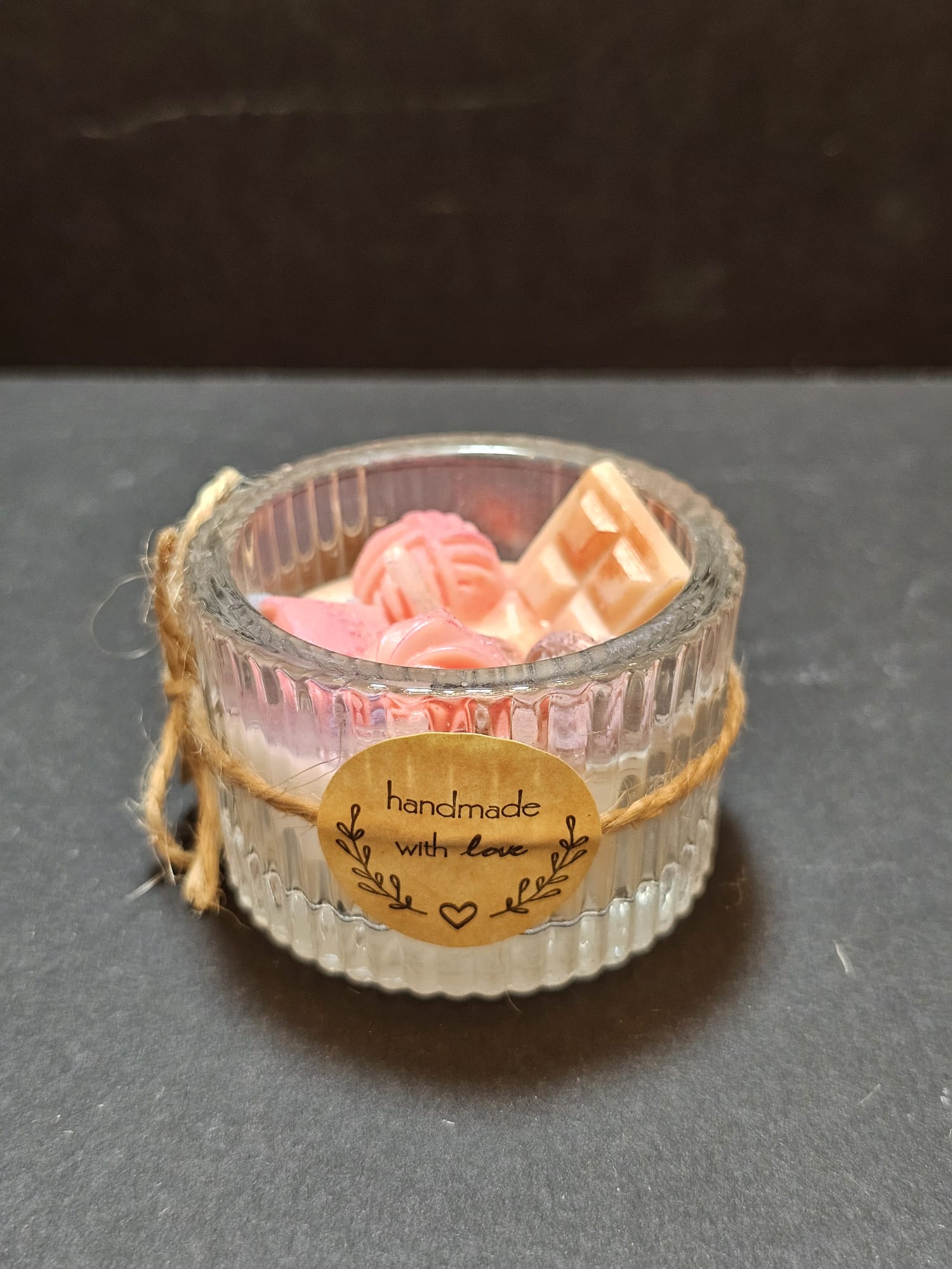 Unsere handgemachte Teelichtkerze im Glas ist die ideale Wahl, um jedem Anlass eine besondere Note zu verleihen. Egal ob für Hochzeiten, Partys oder einfach als kleine Aufmerksamkeit – diese Kerze sorgt für eine gemütliche Atmosphäre und bringt Wärme in jedes Zuhause. Wählen Sie aus verschiedenen Duftvariationen und erfreuen Sie Ihre Gäste oder Lieben mit einem durchdachten und stilvollen Geschenk.